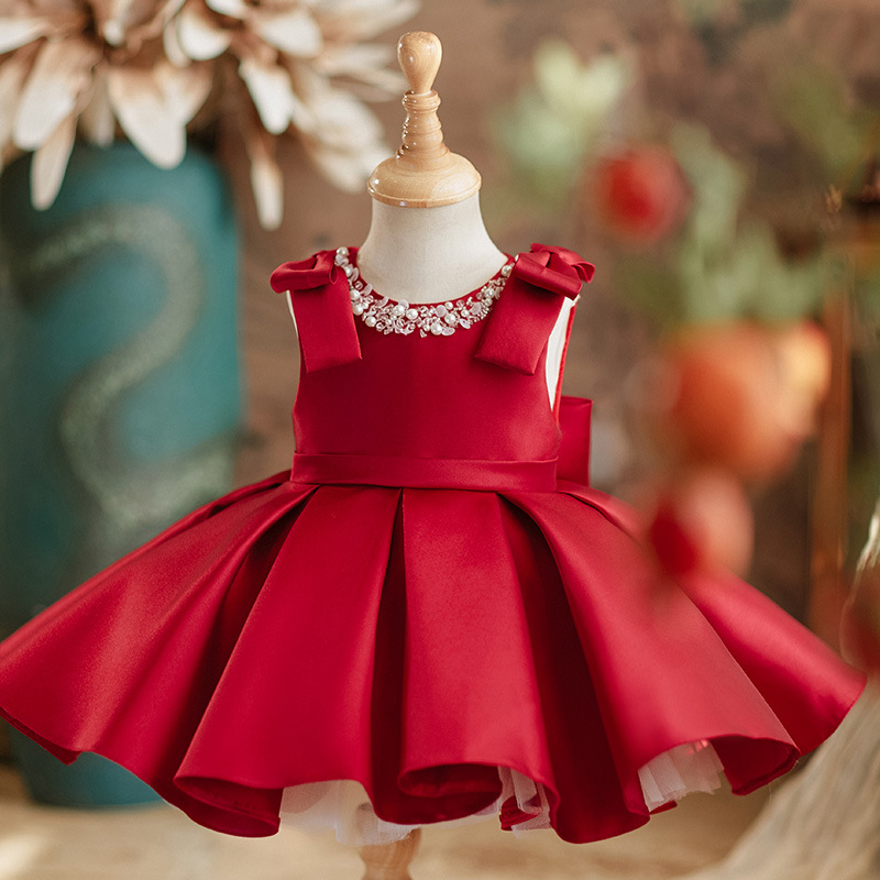 Girl's Princess Dress Red Tulle Tutu Skirt Sequined Bow
